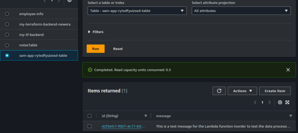 aws s3 cp test.json s3://<your-s3-bucket-name>/Check the DynamoDB table to verify that the processed data has been stored.
